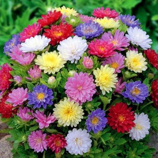 Астра низкорослая микс, однолетний цветок, крупные махровые соцветия, для ковровых посадок, медонос