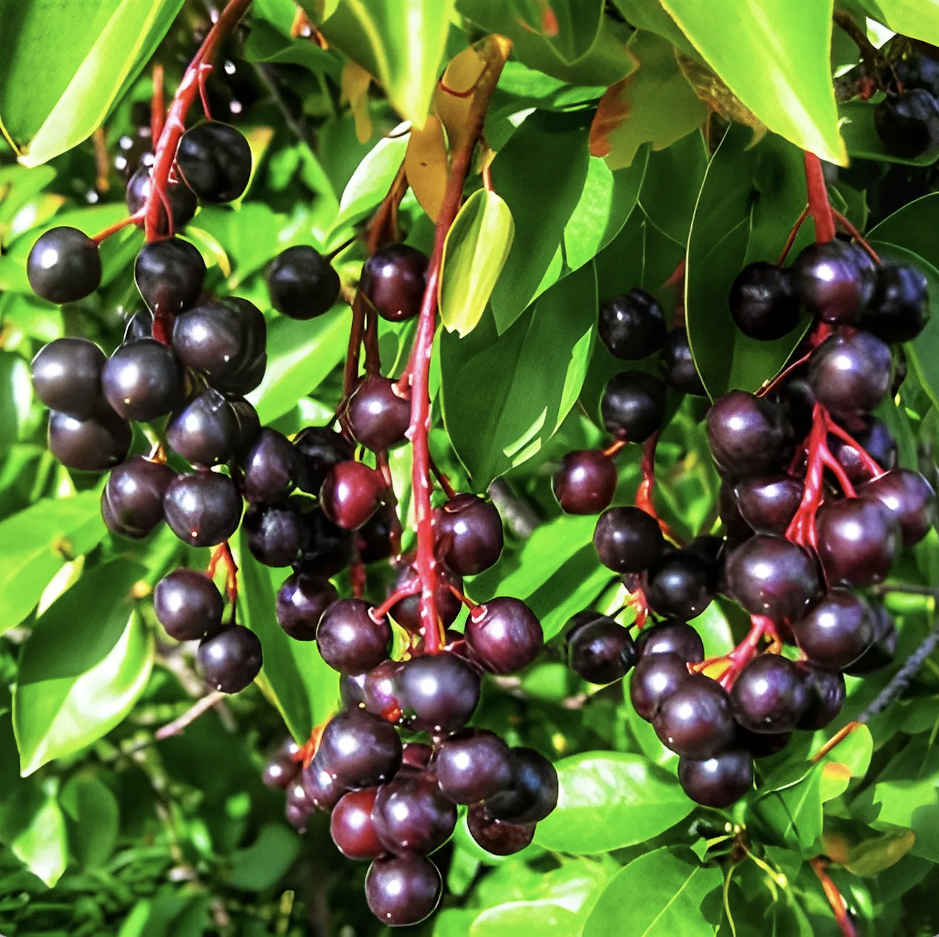 Описание. Черёмуха виргинская – крупный кустарник или небольшое дерево с быстрым ростом, в культуре обычно достигает 3-6 м высоты, при благоприятных условиях способна вырастать до 7-8 м с овальной или округлой кроной. Листья очередные, овальные, с мелкозубчатым краем, летом тёмно-зелёные, осенью приобретают жёлтые и красные оттенки. Цветёт обильно в конце весны – начале лета кистями белых ароматных цветков, которые привлекают пчёл и других опылителей. После цветения формируются многочисленные мелкие костянки диаметром около 6-10 мм, по мере созревания меняющие окраску от тёмно-вишнёвой до почти чёрной, пригодные для переработки в варенье, соки и другие продукты. Растение отличается высокой зимостойкостью, устойчивостью к городским условиям и хорошо возобновляется за счёт корневой поросли и самосева, формируя плотные живые группы и кулисы.