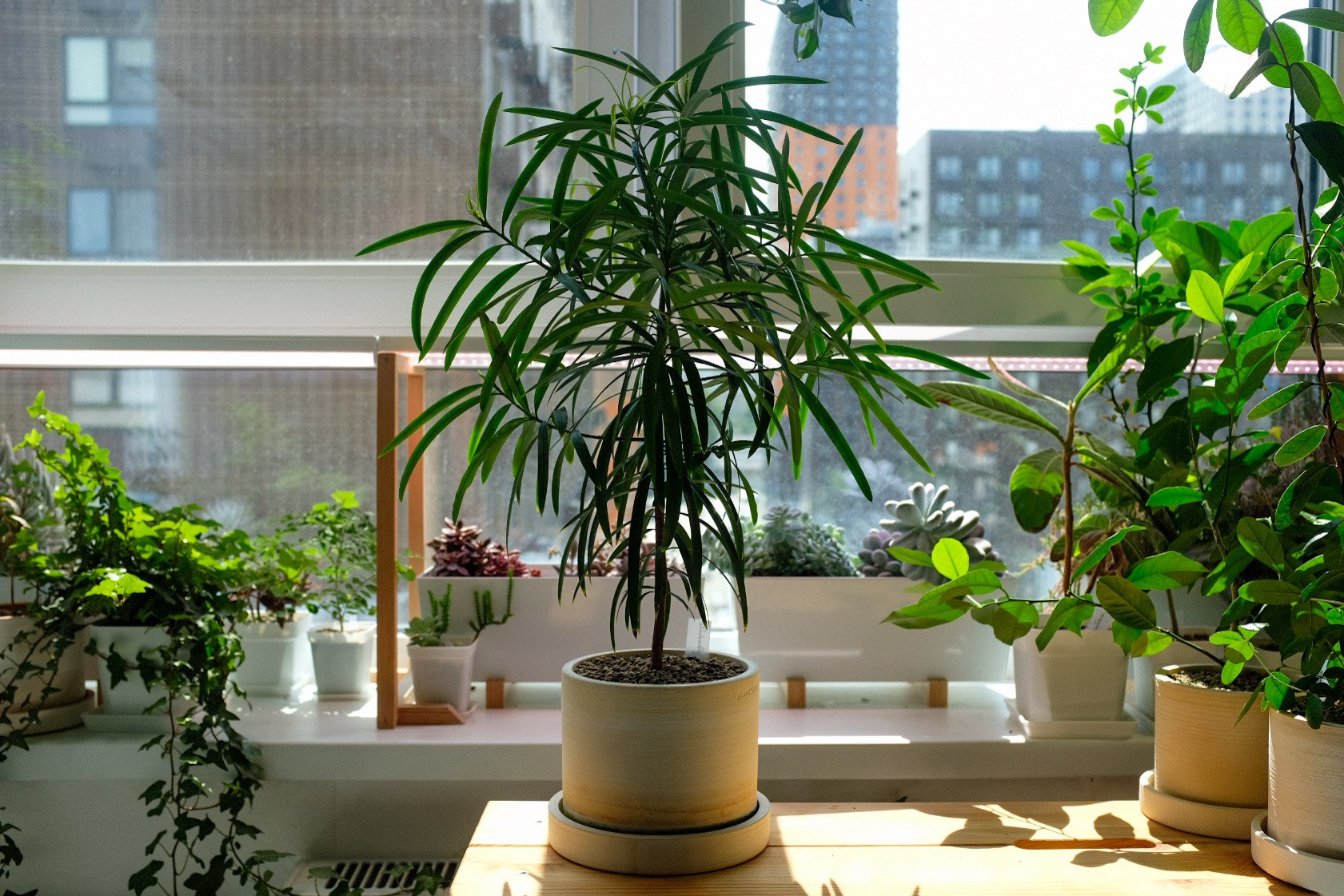 С июня до конца октября росли на улице при лёгком притенении. После переноса на домашний подоконник, медленно но продолжают успешно расти, уже дали новую партию листьев. При нехватке естественного света практически не вытягивается. Хотя с досвечиванием дело пошло бы быстрее) -